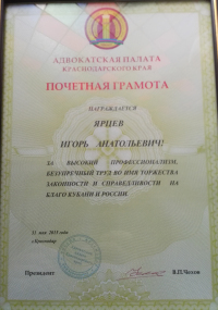 Адвокат - Адвокатская палата Краснодарского края. 18 лет стажа