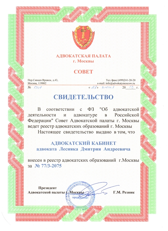 Адвокат - Адвокатский кабинет № 2075. 10 лет стажа